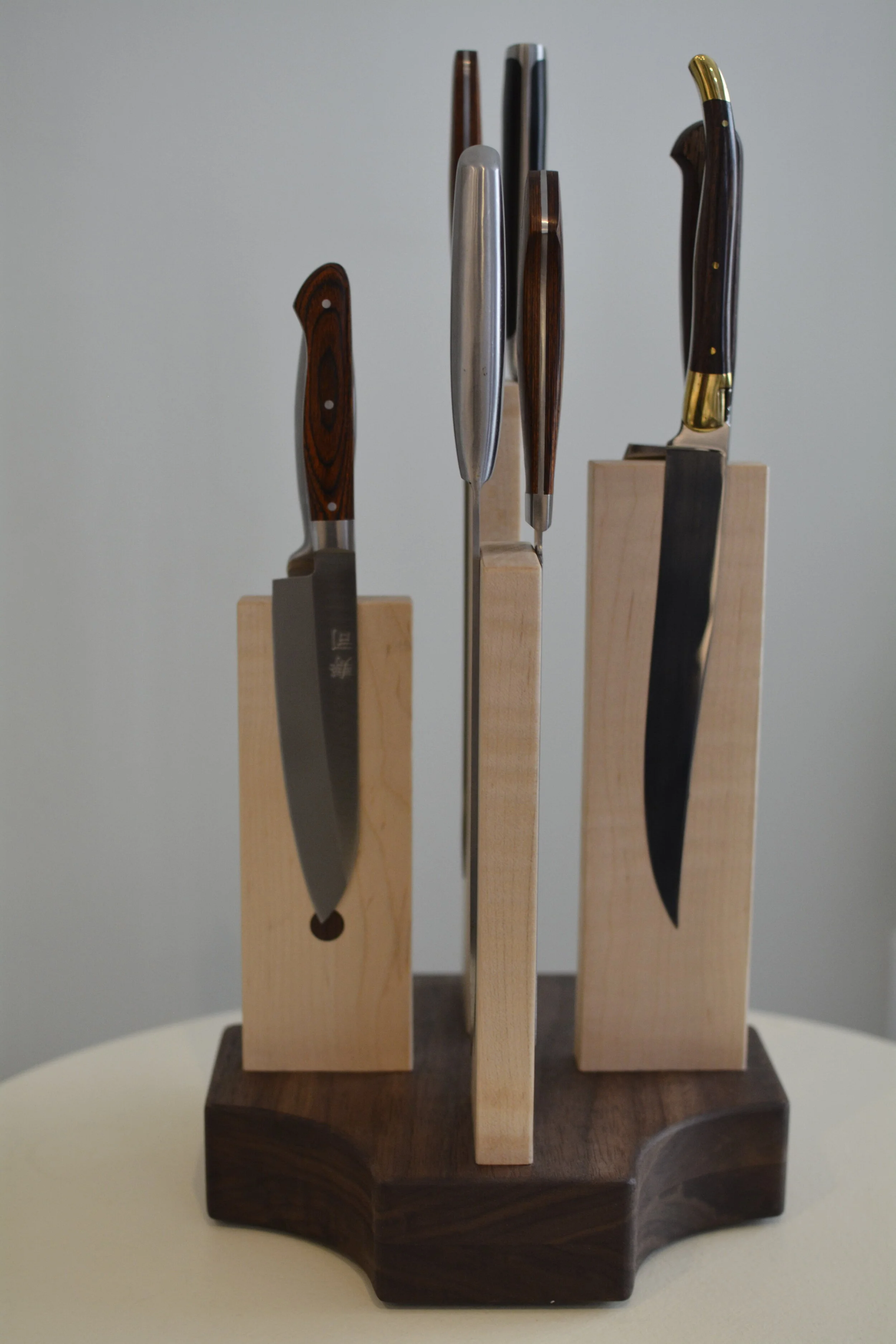 The Magnetic Knife Holder has double sided magnetic blocks. The holder provides elegant countertop storage and easy access for your kitchen knives.